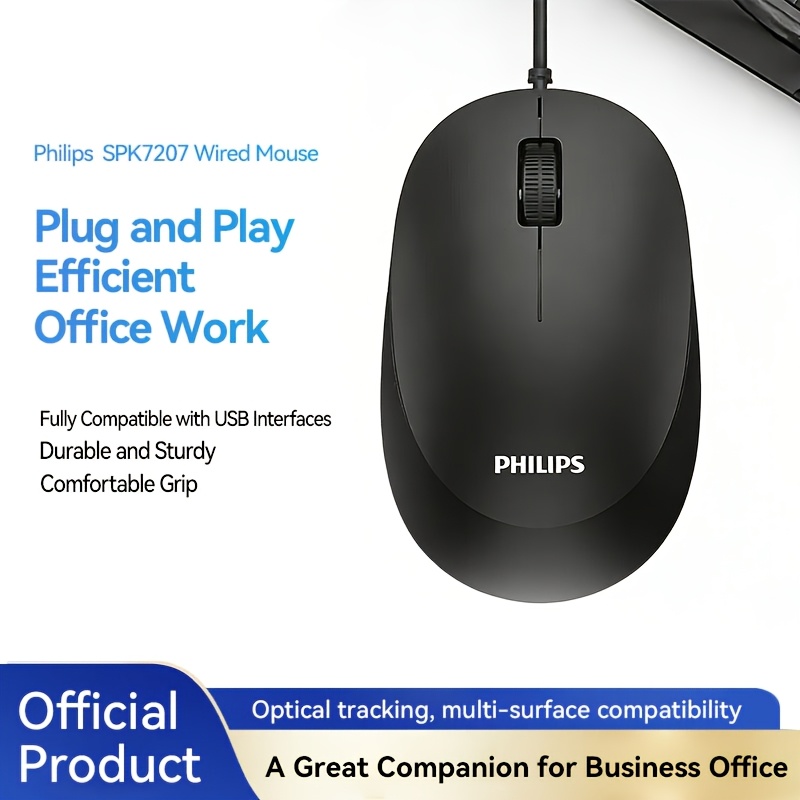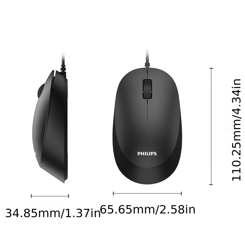 Philips Wired Mouse, 1200 DPI, Ergonomic Design, Plug-and-Play USB, Suitable for Office, Home, and Gaming Use