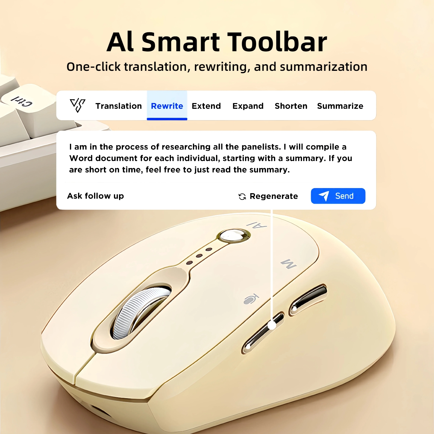 T-WOLF AI Wireless Mouse - Includes Free Smart AI Office, Voice-To-Text And Translation, AI Writing And PPT Generation, Silent Wireless + 2.4G Dual-Mode Office Mouse, Rechargeable with Battery Level Display, Suitable for PC, Laptops, And Tablets
